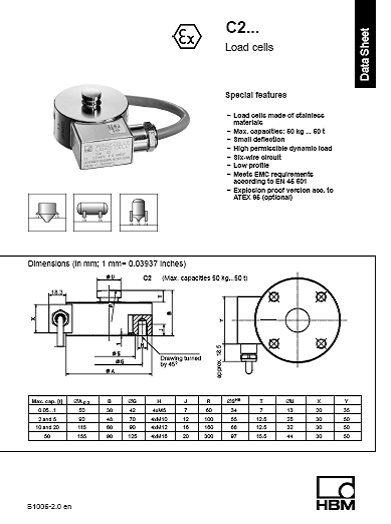 C2 系列是防銹蝕材料制成的力傳感器,應用于壓力測量等方面,提供極高精度 ,并可進行靜態(tài)和動態(tài)測量,結(jié)實,可承受高動態(tài)負載.