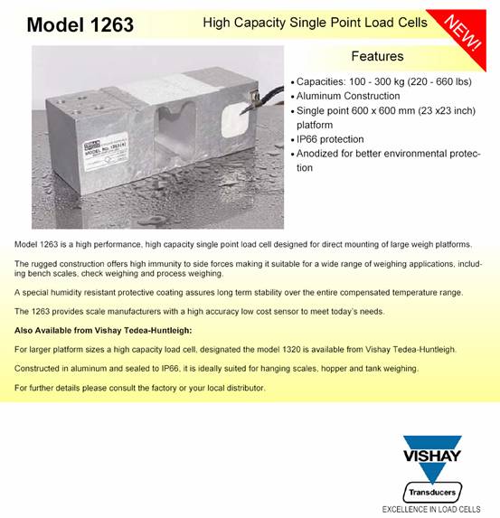 美國(guó)Tedea-Huntleigh 1263-200kg稱重傳感器描述: