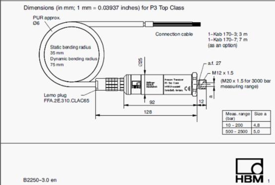 德國(guó)HBM p3mb/200bar壓力傳感器關(guān)鍵性能: