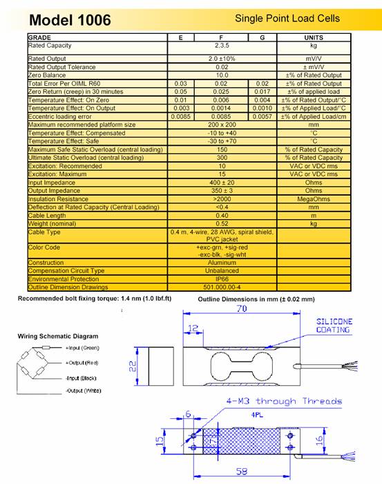美國Tedea-Huntleigh 1006-2kg稱重傳感器技術(shù)參數(shù)圖: