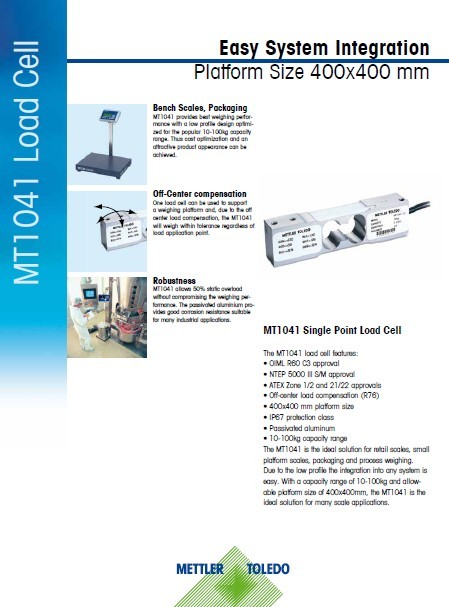 瑞士梅特勒托利多MT1041-15稱重傳感器具體型號量程: