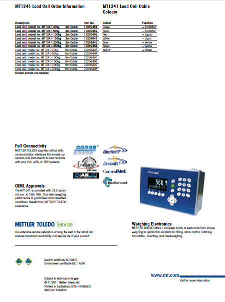 以上是瑞士梅特勒托利多mt1241-100kg稱重傳感器的產(chǎn)品資料,如需了解詳細信息,請登錄網(wǎng)址:http://cqmold.com.cn,找銷售三部找高工程師。