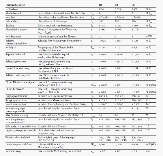 德國(guó)sartorius PR6241/22C3稱(chēng)重傳感器技術(shù)參數(shù):