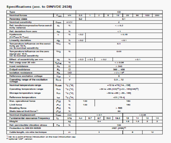 德國HBM C2/1T稱重傳感器技術(shù)參數(shù)圖: