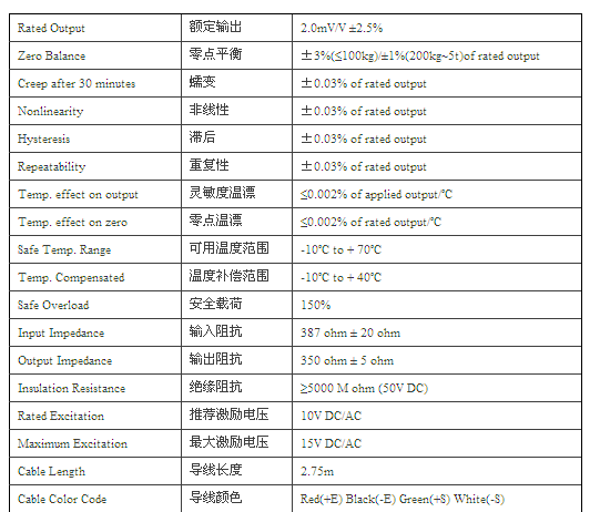 美國(guó)Transcell CR-3T稱(chēng)重傳感器技術(shù)參數(shù)圖: