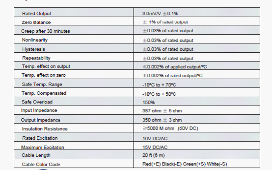 美國Transcell SBS-1.5稱重傳感器技術(shù)參數(shù)圖: