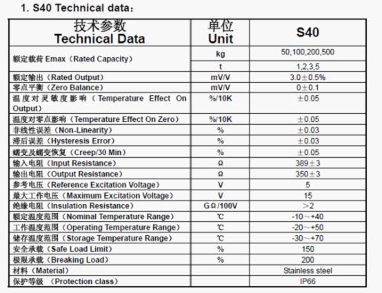 德國(guó)HBM S40/200KG稱重傳感器技術(shù)參數(shù)圖: