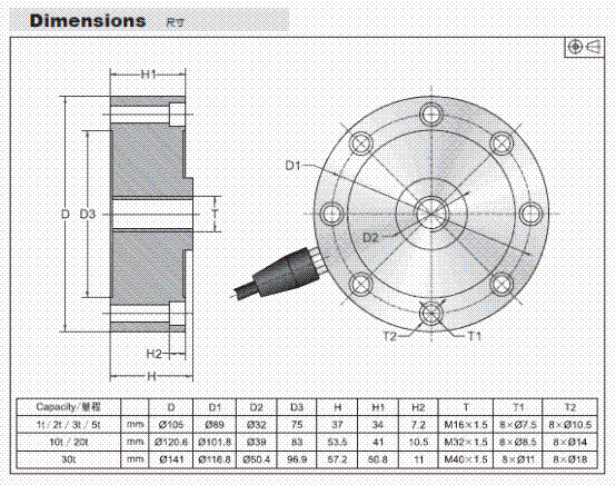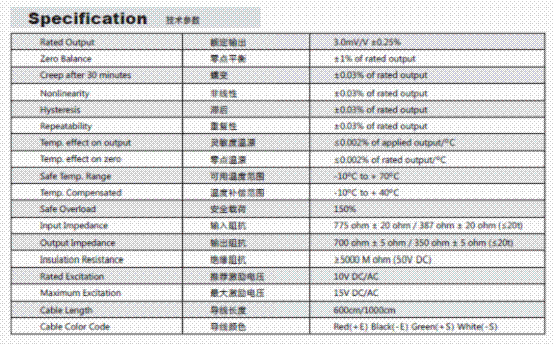 美國(guó)Transcell DBSL-3T稱(chēng)重傳感器技術(shù)參數(shù)圖: