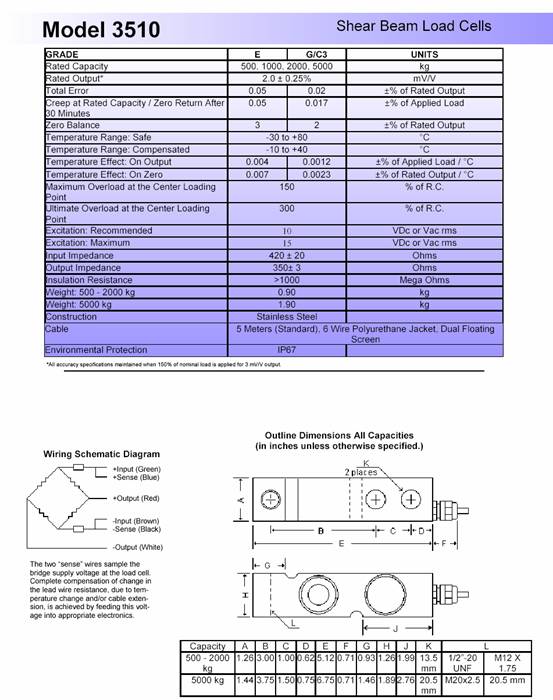 美國TEDEA-HUNTLEIGH 3510-2000kg稱重傳感器技術參數(shù)圖: