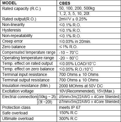 韓國Bongshin CBES-50kgf稱重傳感器技術(shù)參數(shù)圖: