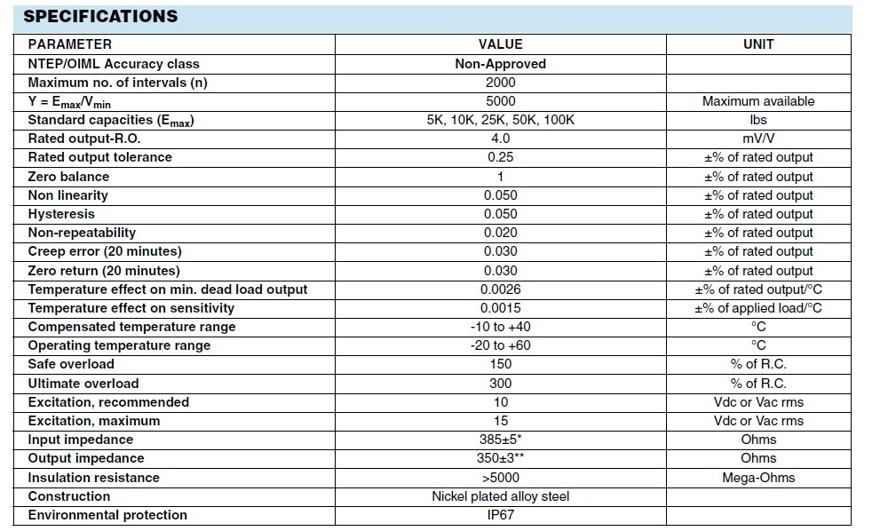 美國世銓Celtron LCD-25klb稱重傳感器技術(shù)指標(biāo):