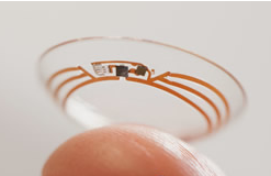 谷歌還一直在忙于查驗智能隱形眼鏡,后者日后或許會被糖尿病患者用來查驗血糖濃度。這種隱形眼鏡是在兩層透鏡材料之間嵌入纖細芯片和傳感器。當(dāng)眼淚經(jīng)過透鏡材猜中的纖細穿孔接觸到傳感器后,傳感器就能從眼淚中測出血糖濃度。該透鏡每秒鐘可查驗一次血糖濃度。