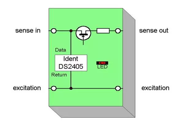 在測量橋路上連接 TEDS 模塊是另外一種方法,無需更換電纜。零線技術(shù)的基本功能: 電壓脈沖打開開關(guān),數(shù)據(jù)從芯片中讀取。當(dāng)開關(guān)關(guān)閉,芯片通過 反饋/激勵(lì) 電纜短路,傳感器進(jìn)入測量模式。Yi4廣州南創(chuàng)電子科技有限公司