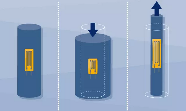 如果應(yīng)變片被壓縮,其電阻(Ω)會(huì)下降,如果拉伸,則電阻增加。