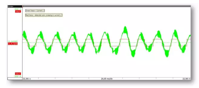 要正確計(jì)算任何功率結(jié)果,分析儀需要識(shí)別輸入信號的“周期”。使用高級算法,可以輕松檢測和顯示周期,如下圖所示。典型的功率分析儀使用PLL,但其在動(dòng)態(tài)負(fù)載變化過程中存在問題。數(shù)字循環(huán)檢測可以在啟動(dòng),減速或任何加載變化時(shí)進(jìn)行測量。