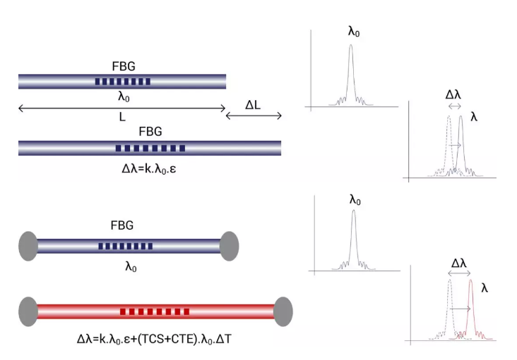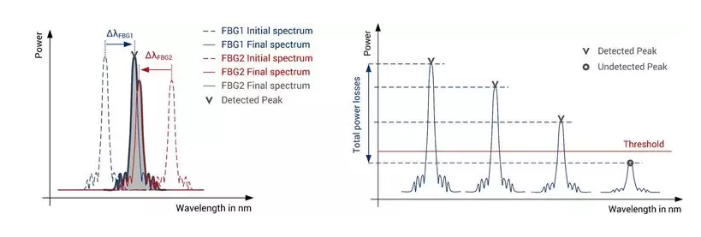 傳感器之間的布拉格波長距離定義了兩個傳感器的最大測量范圍,因?yàn)槿绻盘栔丿B,測量將受到影響。每個傳感器的使用波長范圍取決于其測量范圍,溫度工作范圍,以及傳感器靈敏度、傳感器交叉靈敏度和材料熱膨脹引起的熱感應(yīng)波長偏移。