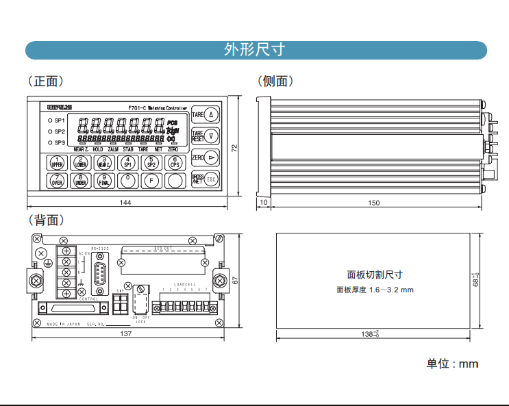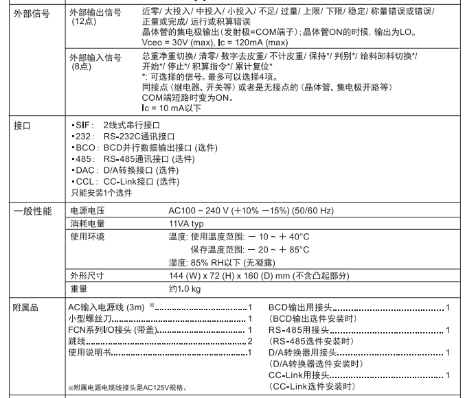 2dK廣州南創(chuàng)電子科技有限公司日本尤尼帕斯稱重儀表F701技術(shù)參數(shù):