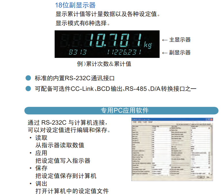 2dK廣州南創(chuàng)電子科技有限公司日本尤尼帕斯稱重顯示控制器F701顯示單位:t,kg,g,N,lb,無單位,可選