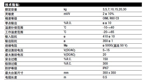 托利多MT1022-3kg稱重傳感器,MT1022-3kg,MT1022-3kg傳感器各項(xiàng)技術(shù)指標(biāo):