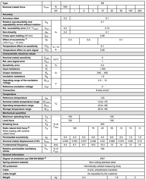 C2/500N_C2/10KN_C2/50KN_德國(guó)HBM力傳感器
