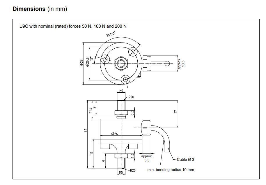 KWT廣州南創(chuàng)電子科技有限公司德國HBM力傳感器1-U9C/2KN尺寸圖:KWT廣州南創(chuàng)電子科技有限公司