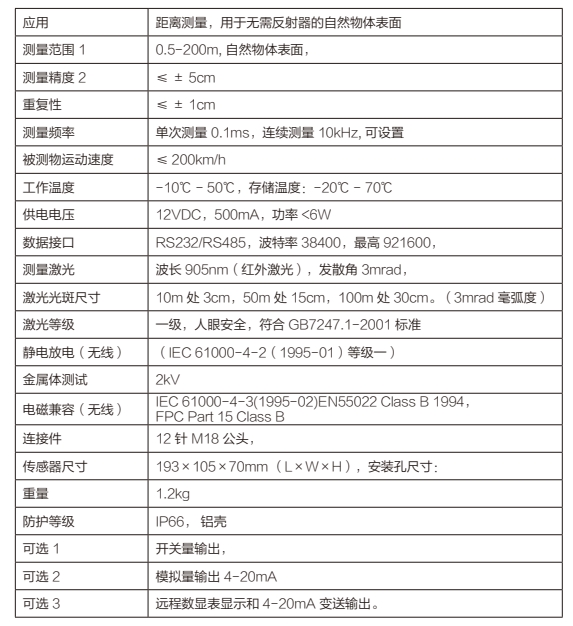 D30廣州南創(chuàng)電子科技有限公司2、 測量距離范圍0.-60米,200米,要使用反光板