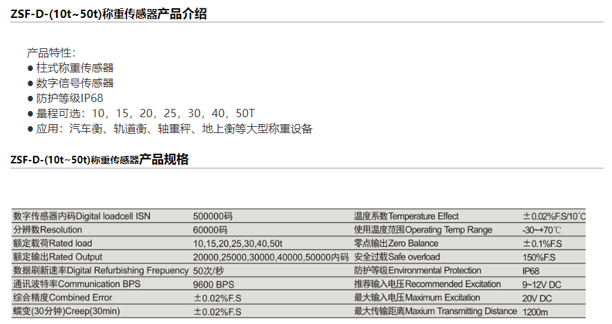 寧波柯力稱重傳感器ZSF/ZSF-A-(10t/15t/20t/25t/30t/40t/50t)