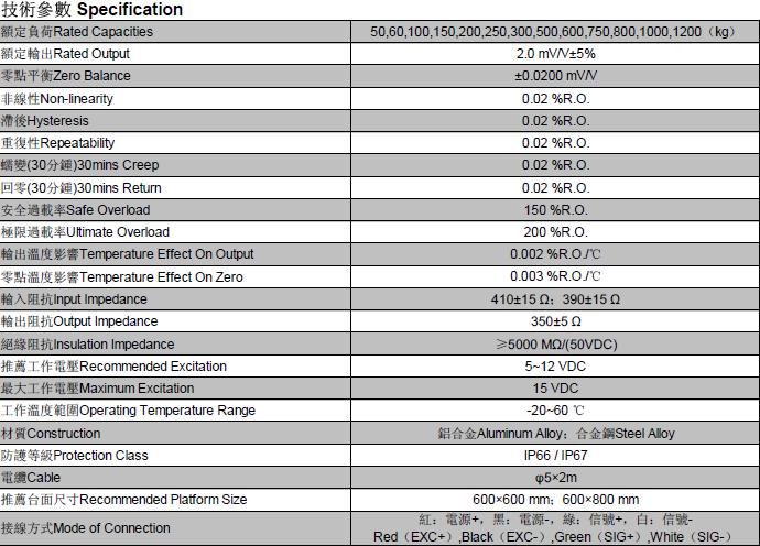 推薦工作電壓Recommended Excitation 5~12 VDC