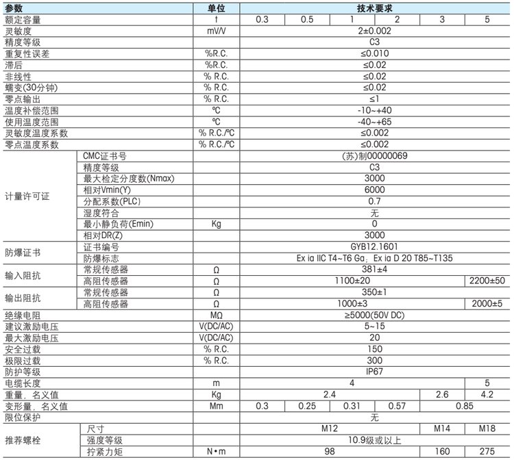 PRx廣州南創(chuàng)電子科技有限公司METTLER TOLEDO稱(chēng)重傳感器SBT-0.3t技術(shù)參數(shù):PRx廣州南創(chuàng)電子科技有限公司