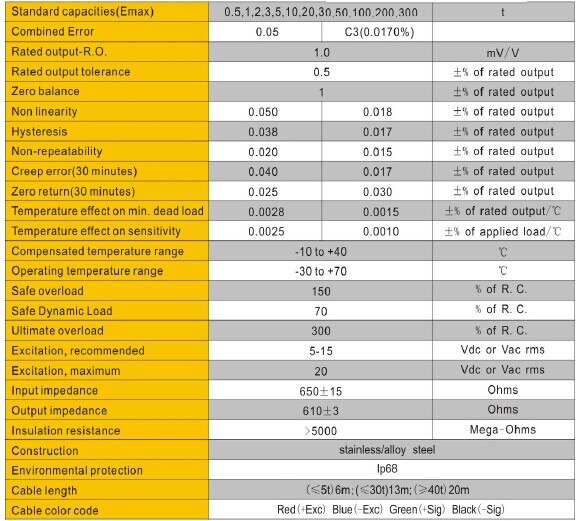 美國NCH稱重傳感器ZC3-500kg參數(shù):