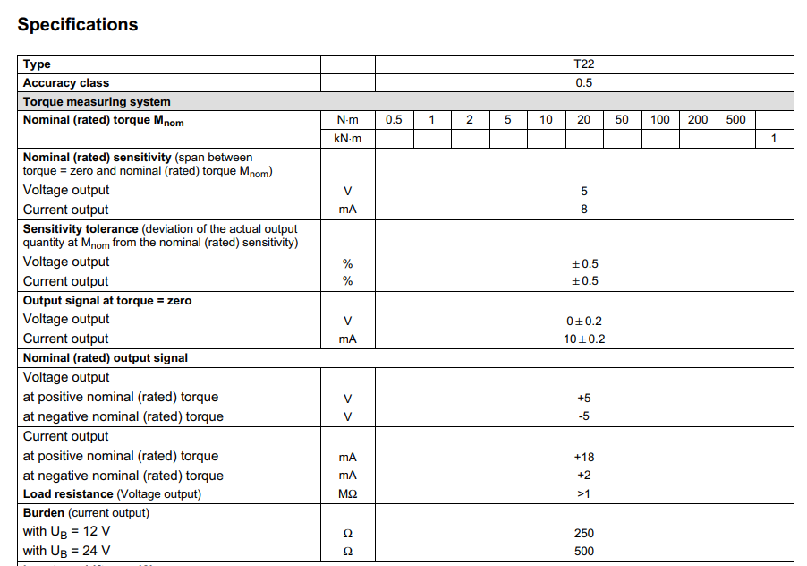 德國HBM T22扭矩傳感器技術(shù)參數(shù):