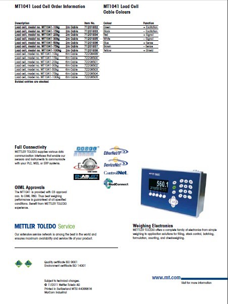 瑞士METTLER TOLEDO MT1041-30稱重傳感器產(chǎn)品資料圖: