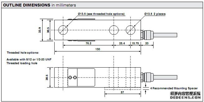 美國Tedea 3310稱重傳感器量程:3310-250kg、3310-500kg、3310-750kg、3310-1000kg。