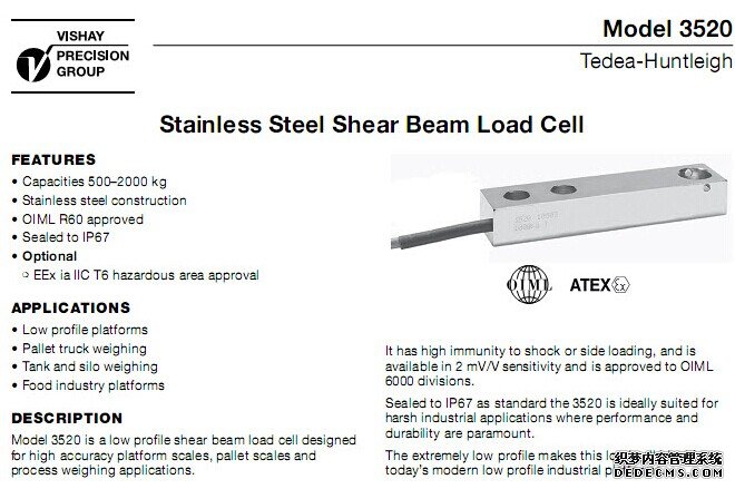 美國Tedea 3520稱重傳感器現(xiàn)貨、價格、產(chǎn)品資料、圖片、貨期、發(fā)貨方式、技術(shù)參數(shù)cTa廣州南創(chuàng)電子科技有限公司