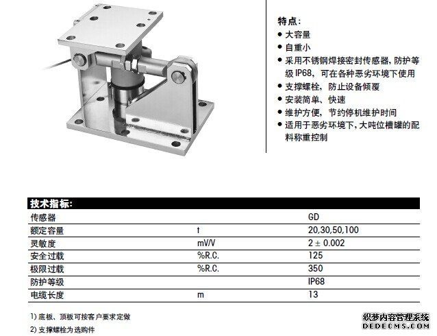 不銹鋼稱重模塊,有效抵御腐蝕性物質(zhì)的侵蝕,固定,浮動(dòng),半浮動(dòng)三種結(jié)構(gòu),可在各種惡劣條件下使用。