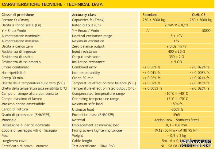 意大利NBC Elettronica稱重傳感器部分型號介紹: