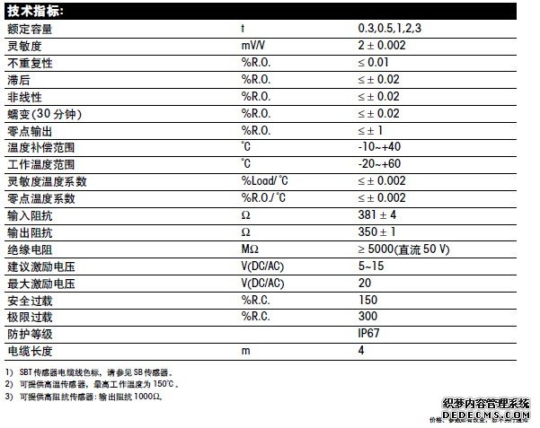 托利多SB稱重傳感器技術(shù)指標(biāo):