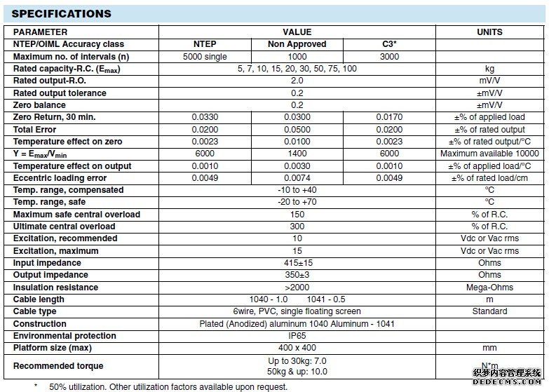 1040-50kg稱重傳感器產(chǎn)品平臺(tái):特迪亞TEDEA稱重傳感器的平臺(tái)是單點(diǎn)400 x 400mmBrp廣州南創(chuàng)電子科技有限公司