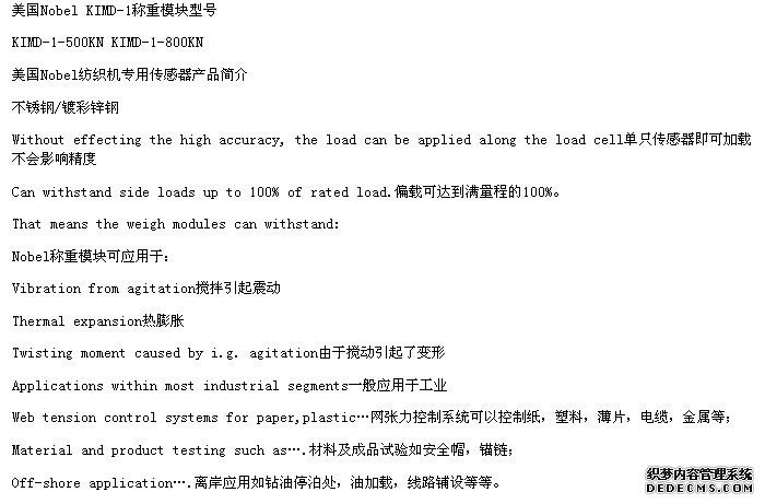 美國Nobel KIMD-M-500KN稱重傳感器模塊參數(shù):