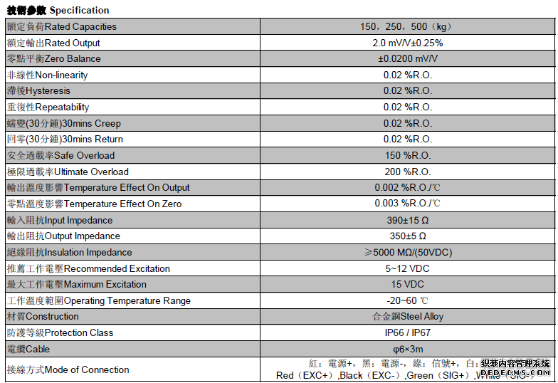 接線方式; 紅:電源+,黑:電源-,綠:信號(hào)+,白:信號(hào)-