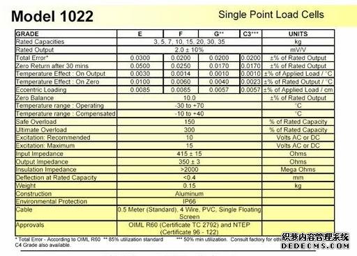 產(chǎn)品規(guī)格:稱(chēng)重傳感器
