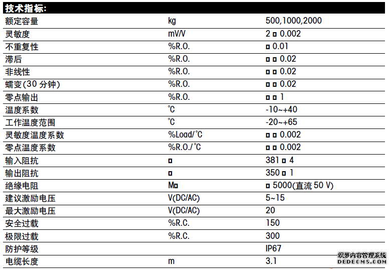 il-150kg 單點(diǎn)式鋼質(zhì)傳感器,容量150kg,2.5m電纜