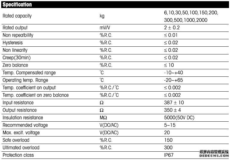 適用于干燥環(huán)境中,主要用于臺(tái)秤、包裝秤、皮帶秤、檢重秤和過程控制的場(chǎng)合。傳感器容量有6,10,30,50,100,150,200,300,500,1000,2000kg