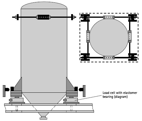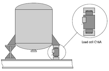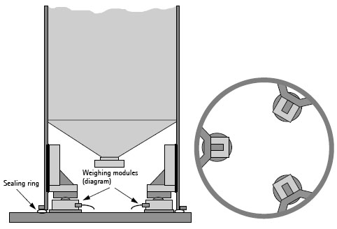 實(shí)踐中通常發(fā)現(xiàn)圓形立罐的外殼一般達(dá)到底部,以保證整個(gè)結(jié)構(gòu)的穩(wěn)定性,此時(shí)需要特殊的安裝方式正確地安裝傳感器。下圖顯示用傳感器來測量的這一結(jié)構(gòu)的原理,這一方案即通過它將重量導(dǎo)入傳感器。當(dāng)然稱重模塊也包含抬升保護(hù)。即使結(jié)構(gòu)的小的抬升已足以使整個(gè)重量導(dǎo)入傳感器。所以在此結(jié)構(gòu)中需要一圓形密封圈來密封,它非常柔軟不足以產(chǎn)生附加力。ZoZ廣州南創(chuàng)電子科技有限公司