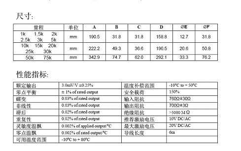 DBS-5klb傳感器,美國傳力Transcell DBS-10klb稱重傳感器技術(shù)參數(shù):