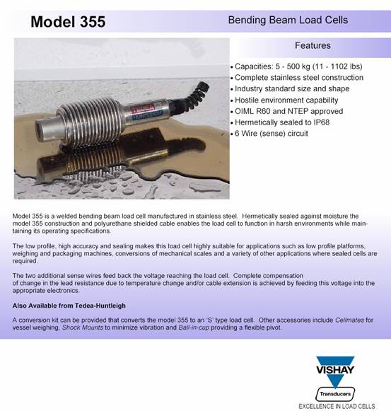 美國特迪亞tedea 355-200kg稱重傳感器產(chǎn)品特性描述: