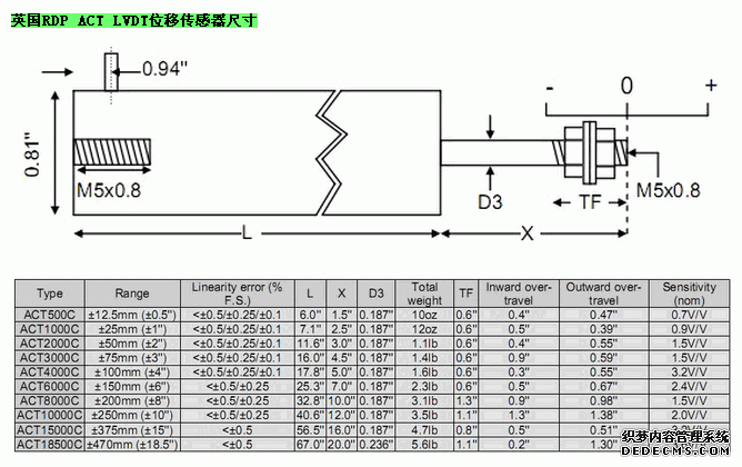 英國RDP ACT LVDT位移傳感器技術(shù)參數(shù)圖:1Ez廣州南創(chuàng)電子科技有限公司