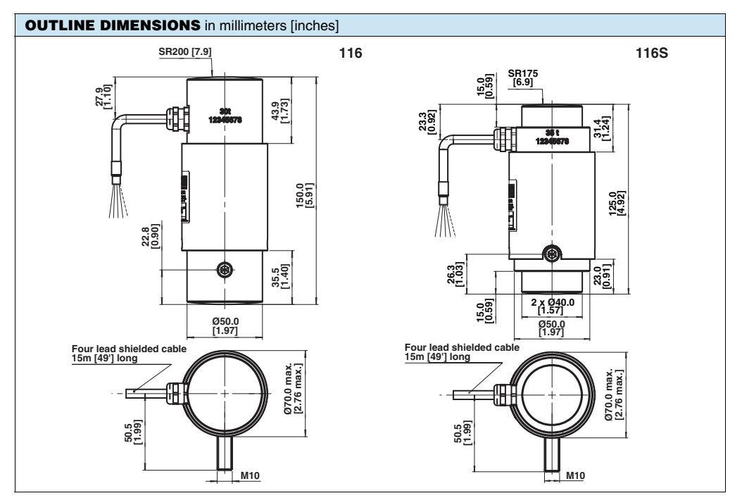zRh廣州南創(chuàng)電子科技有限公司98875: SBM 9363-B10-Load Cell, 2.5K-20T1 2,500lb 20ft RTI 3mV/v 350 OHM WW NTEP IIIL 10 S FM IP67