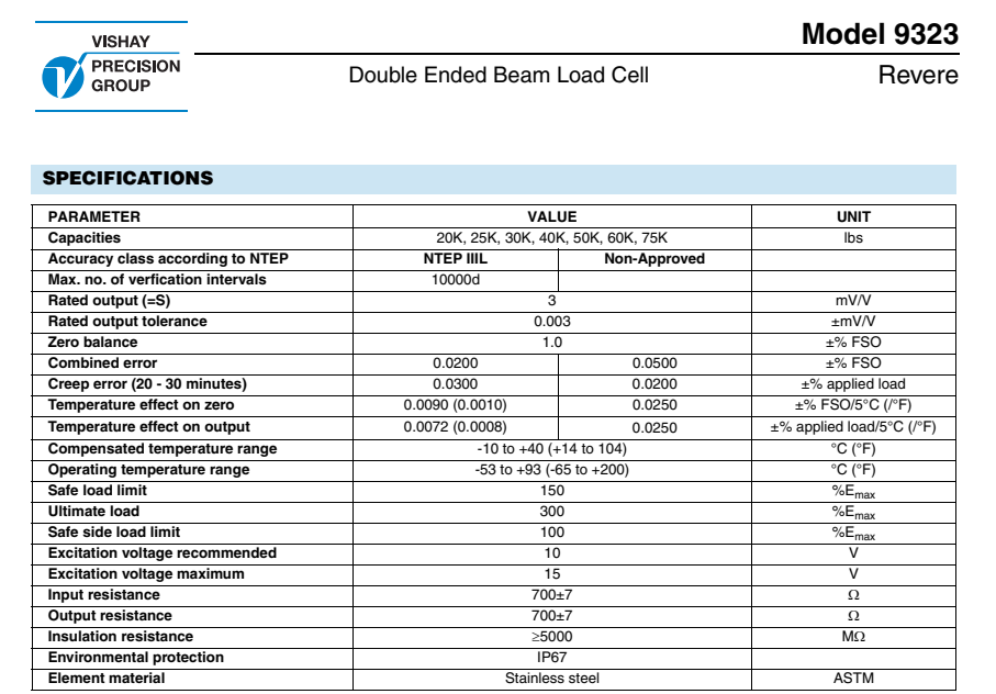 vishay Revere 9323-30klbs稱重傳感器型號(hào)類別技術(shù)參數(shù)選型安裝等資料信息,如果有關(guān)
