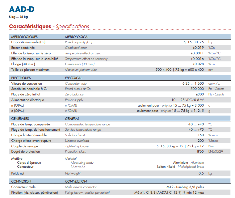 法國(guó)Scaime稱(chēng)重傳感器AAD-D-5KG產(chǎn)品特性:n9G廣州南創(chuàng)電子科技有限公司